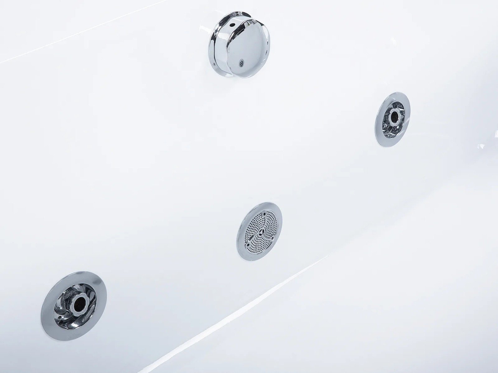 Gracias a su sistema de hidromasaje con 8 chorros y la iluminación LED subacuática, puedes transformar un baño normal en una experiencia terapéutica y relajante.
