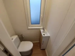 SALA DE ESTAR CON SOFÁ CAMA, DORMITORIO PEQUEÑO CON DOS CAMAS, DORMITORIO DOBLE, BAÑO CON INODORO, LAVABO Y DUCHA.