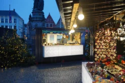 El contenedor de bar está equipado con un toldo plegable y puertas dobles, disponibles en el lado largo y en el lado corto. Las dimensiones son similares a las de un contenedor desmontable de 16 pies, pero el ancho y el largo son medio metro más largos.
