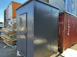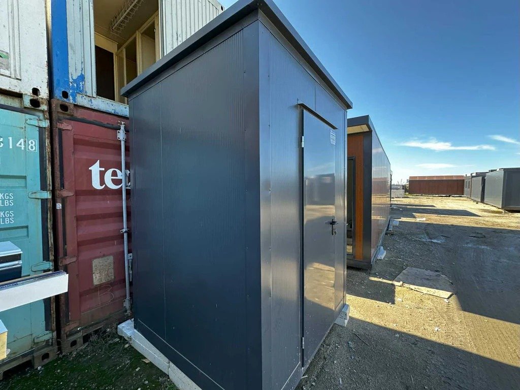El módulo está equipado con un WC, una ducha y un urinario, proporcionando todas las instalaciones necesarias en un solo lugar. Cuenta con una puerta estándar y una ventana que se abre para asegurar una buena ventilación. Es posible personalizar la configuración con una caldera y una instalación eléctrica completa.