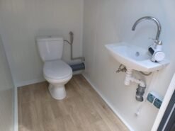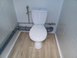 El módulo está completamente equipado con instalaciones de agua, alcantarillado y electricidad, lo que permite un uso inmediato. Incluye un calentador de agua instantáneo para mayor comodidad. Además, su diseño permite un fácil transporte con carretilla elevadora, agilizando su instalación en cualquier lugar.