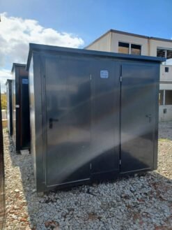 Este contenedor sanitario doble es la solución ideal para instalaciones temporales que requieren un servicio eficiente en un espacio reducido. Su diseño compacto lo hace perfecto para obras, eventos o cualquier lugar donde la optimización del espacio sea clave.