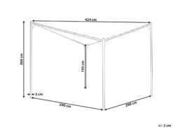 - Dimensiones: 300 cm (ancho) x 300 cm (profundidad) x 260 cm (alto).