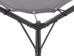 Fabricado con precisión en poliéster duradero y acero con recubrimiento en polvo en negro. Su toldo gris ofrece una excepcional protección UV UPF 50+ (filtra el 98% de la radiación UV), asegurando que su color no se desvanezca. Se instala fácilmente con estacas, sin cimientos.