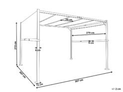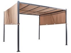 Su sólida estructura de acero termolacado garantiza una excelente estabilidad. El toldo corredero es resistente a los rayos UV (UPF 30+) y se puede mover fácilmente para ajustar la sombra a tu gusto.