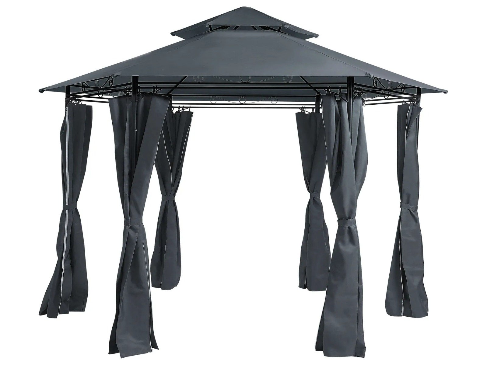 Gazebo PORTEL Metal Gris Grafito: Elegancia hexagonal con cortinas para tu jardín. Prepara tu exterior para el verano con este amplio y estiloso cenador de diseño moderno.