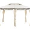 - Material: Acero (estructura), tela de poliéster (toldo y cortinas).