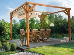 Este gazebo es la solución perfecta para crear un espacio acogedor y natural en tu exterior. Con su elegante estructura de madera de abeto y su diseño atemporal, aporta un toque de calidez y estilo a cualquier jardín o terraza.
