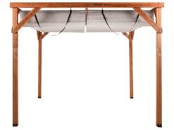 El toldo de tejido, ajustable y retráctil, te permite controlar la cantidad de sombra, adaptándose a cualquier momento del día. Gracias a su robusta construcción, es ideal tanto para relajarse como para organizar reuniones familiares o con amigos.
